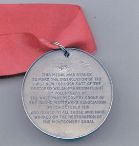 A sponsored non-stop walk along the entire length of the Montgomery Canal, at that time virtually completely derelict and abandoned since 1936. Commencing from the disused basins in Newtown, Powys, and heading northwards to Welsh Frankton, a distance estimated at 36 miles 120 yards, it was undertaken, fittingly on St. David's Day in bitingly cold late-winter weather. A larger legible image is in Pics.