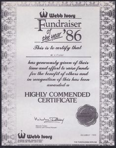 GF at Brierley Hill Civic Hall and his certificate for outstanding commitment to voluntary service in Dudley Borough. (see also Pics).